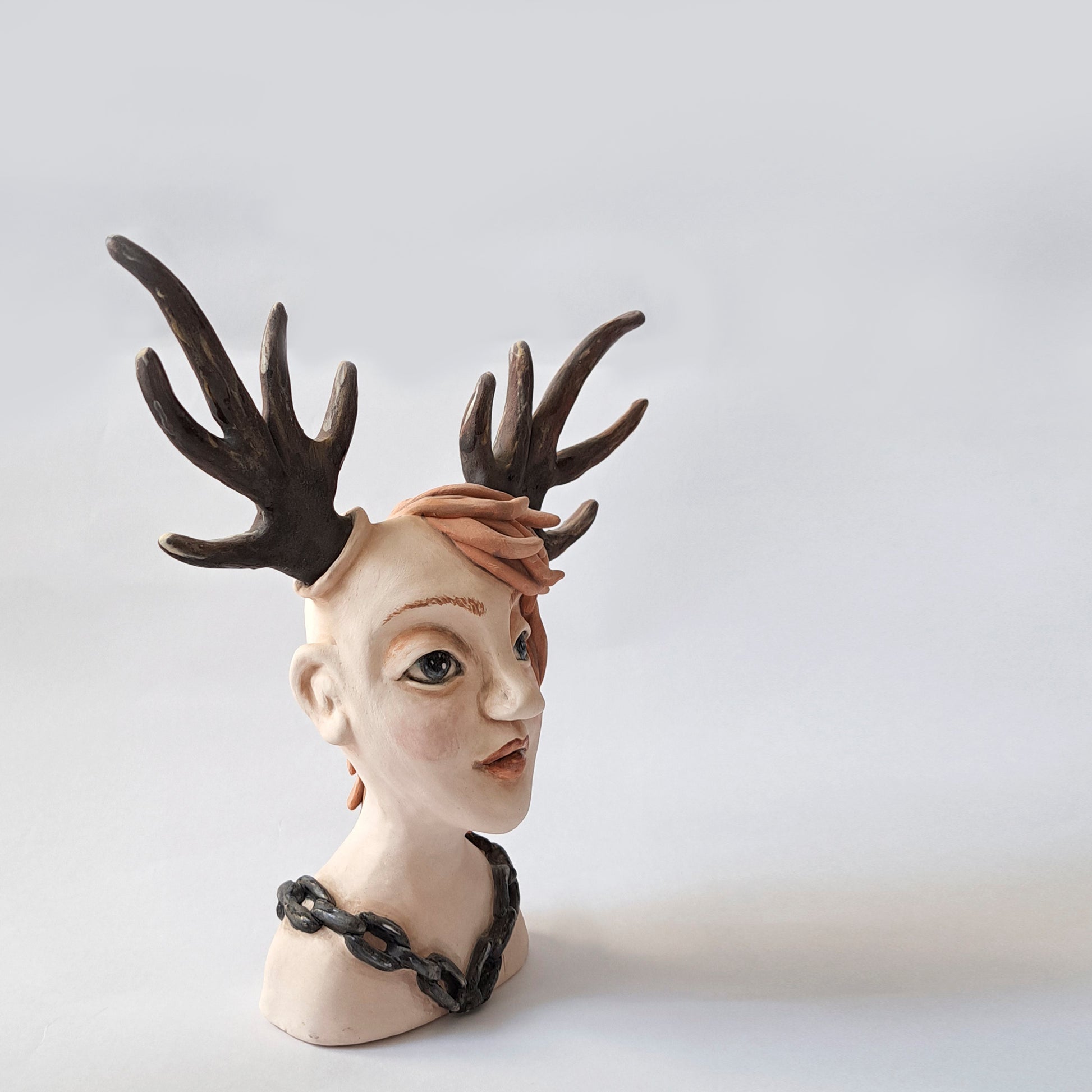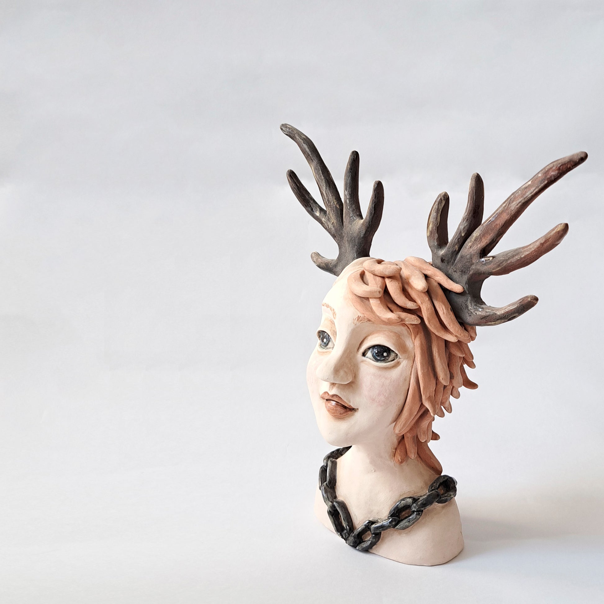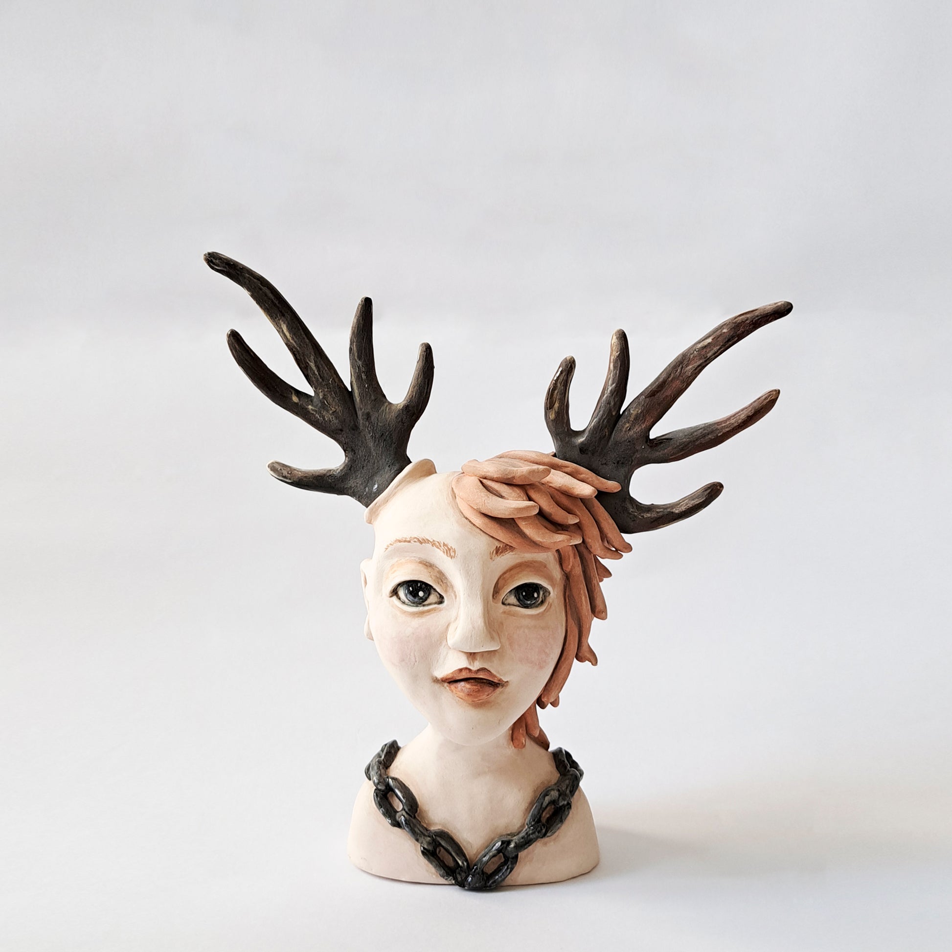 פיסול עבודת יד בחימר בשילוב טכניקת תבניות. צביעה ידנית בצבעי אנגוב וגלזורה חלקית.