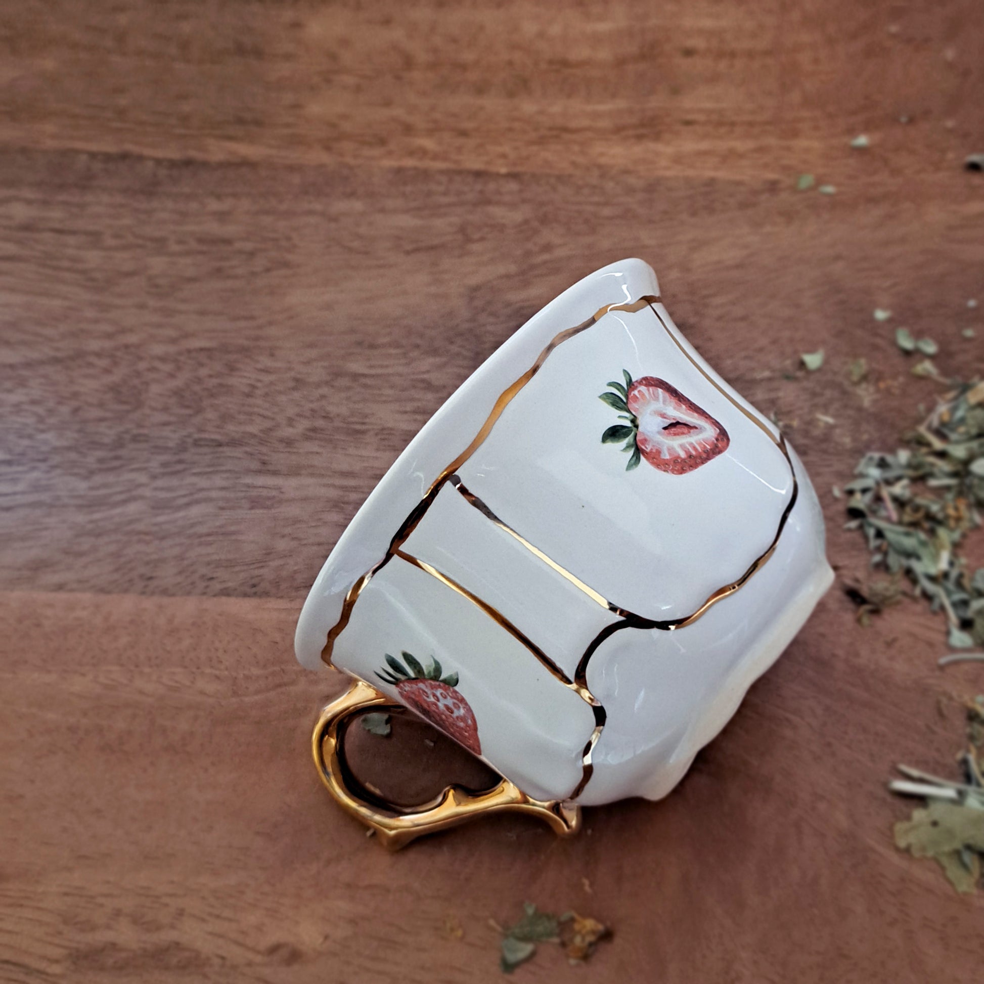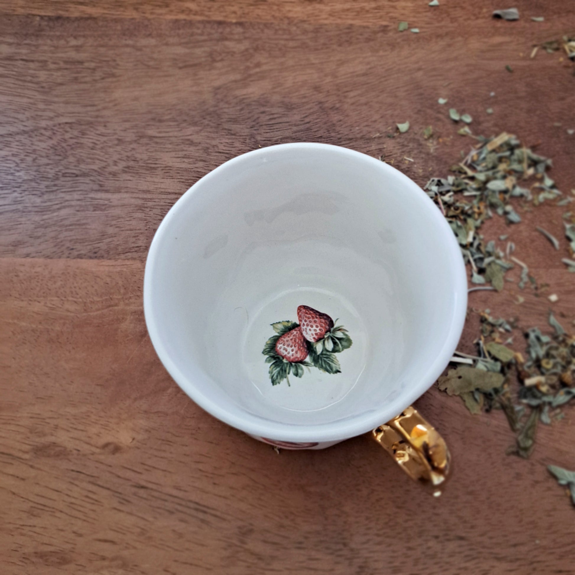 ספל תה מסדרת התותים, מעוטר בזהב טהור.