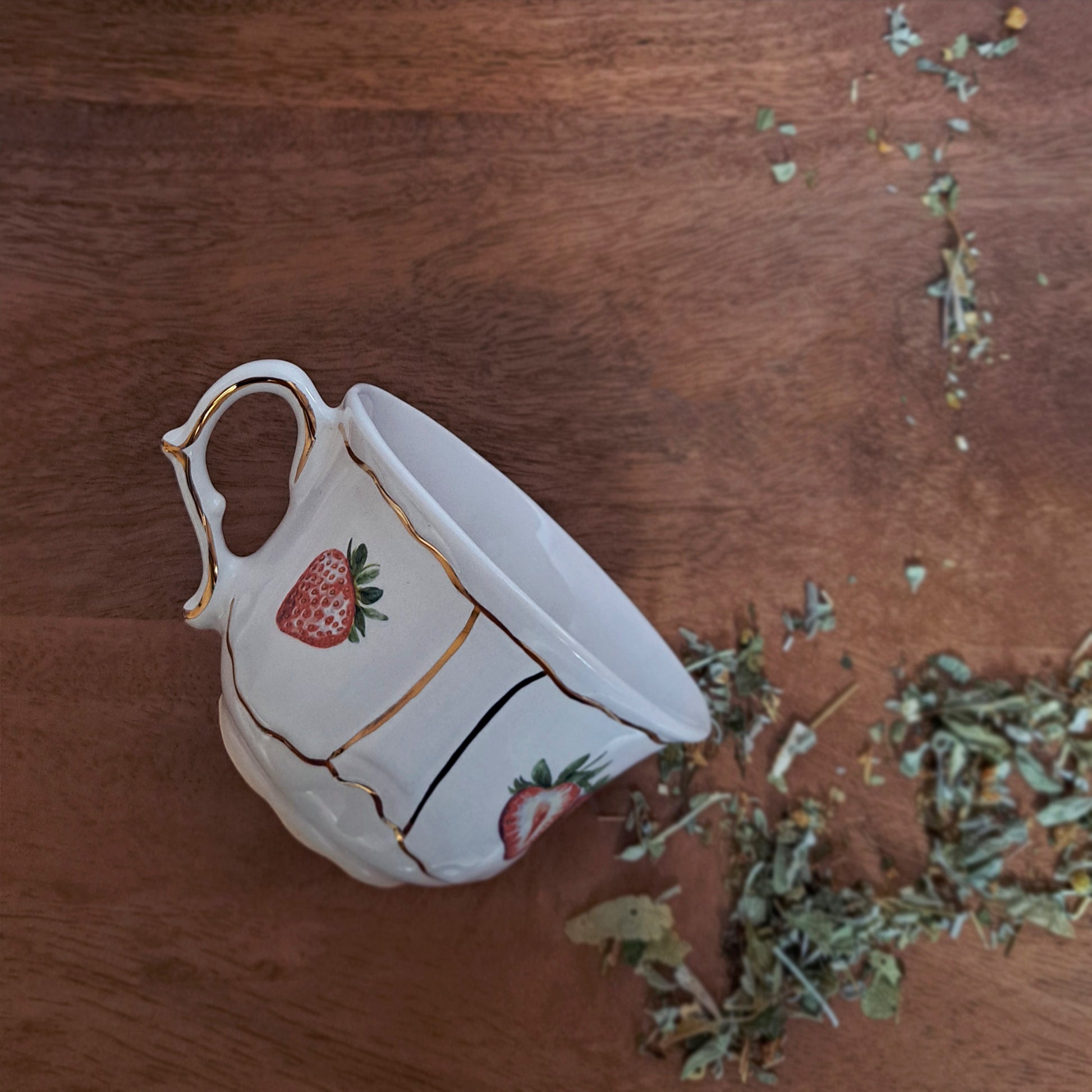 ספל תה מסדרת התותים, מעוטר בזהב טהור.