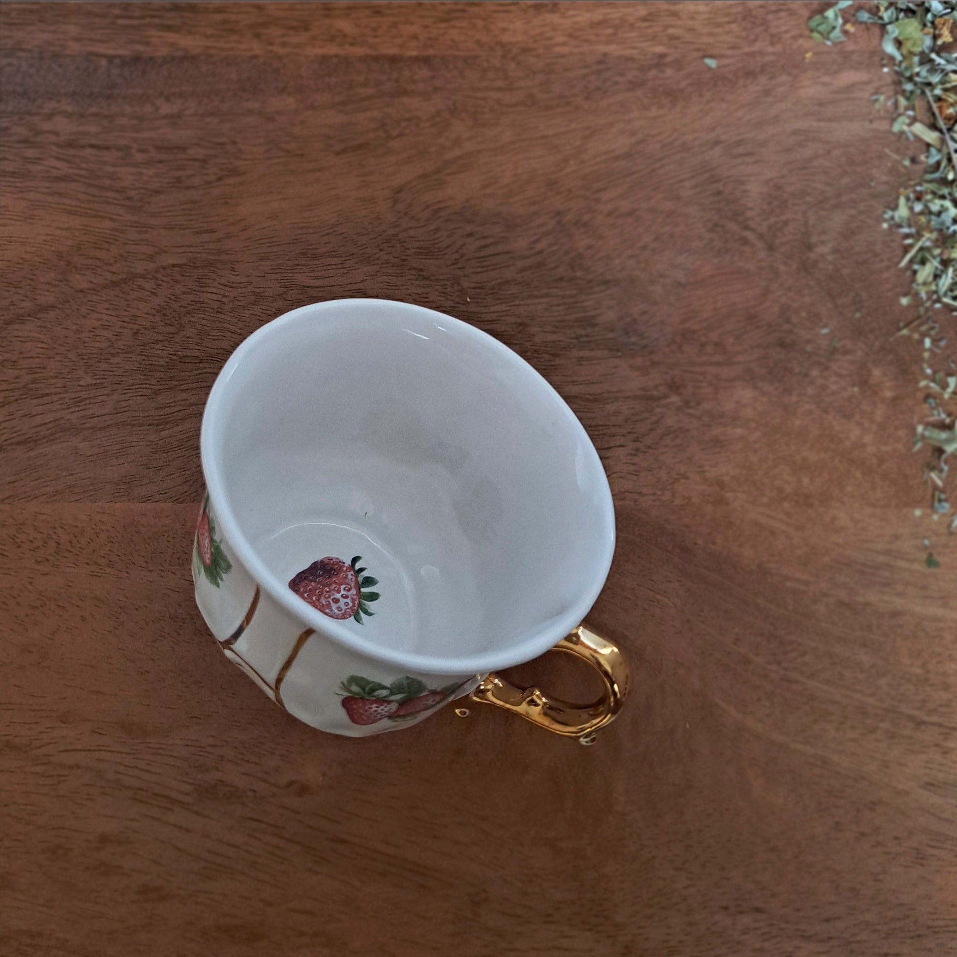ספל תה מסדרת התותים, מעוטר בזהב טהור.