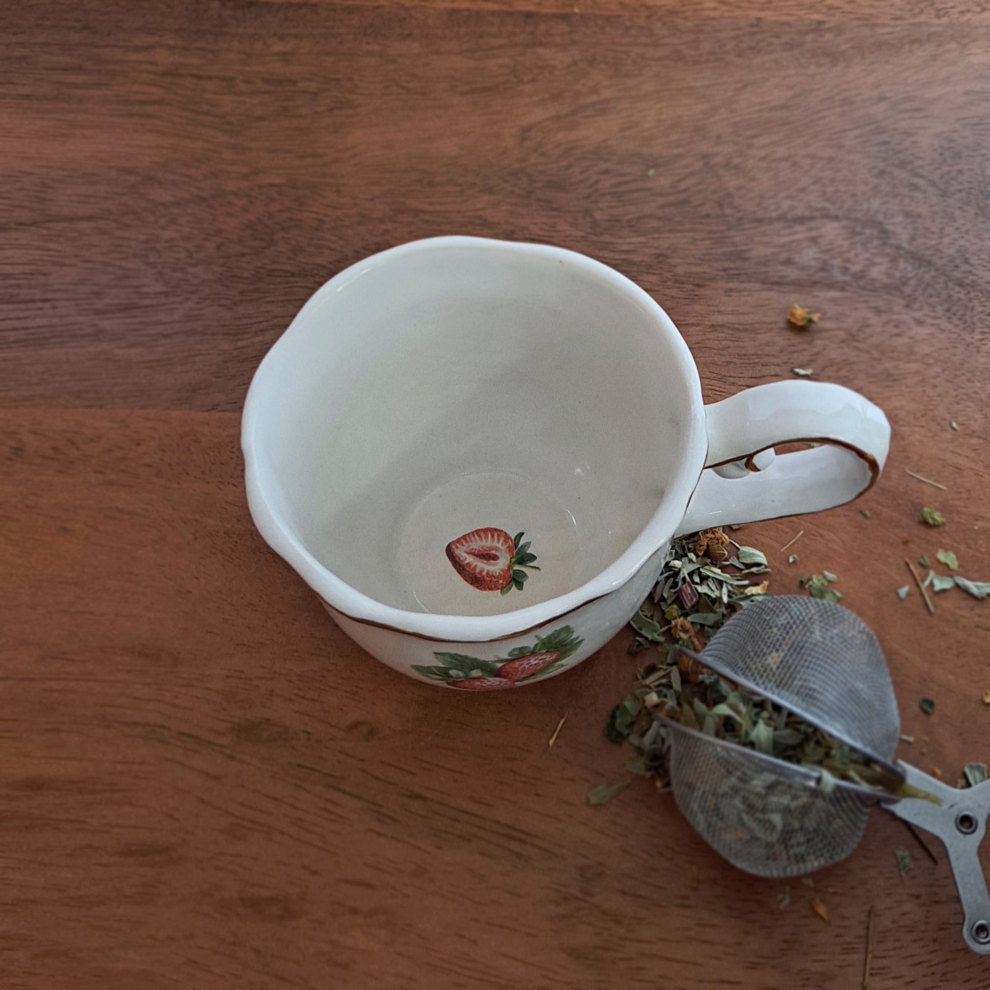 ספל תה מסדרת התותים, מעוטר בזהב טהור.