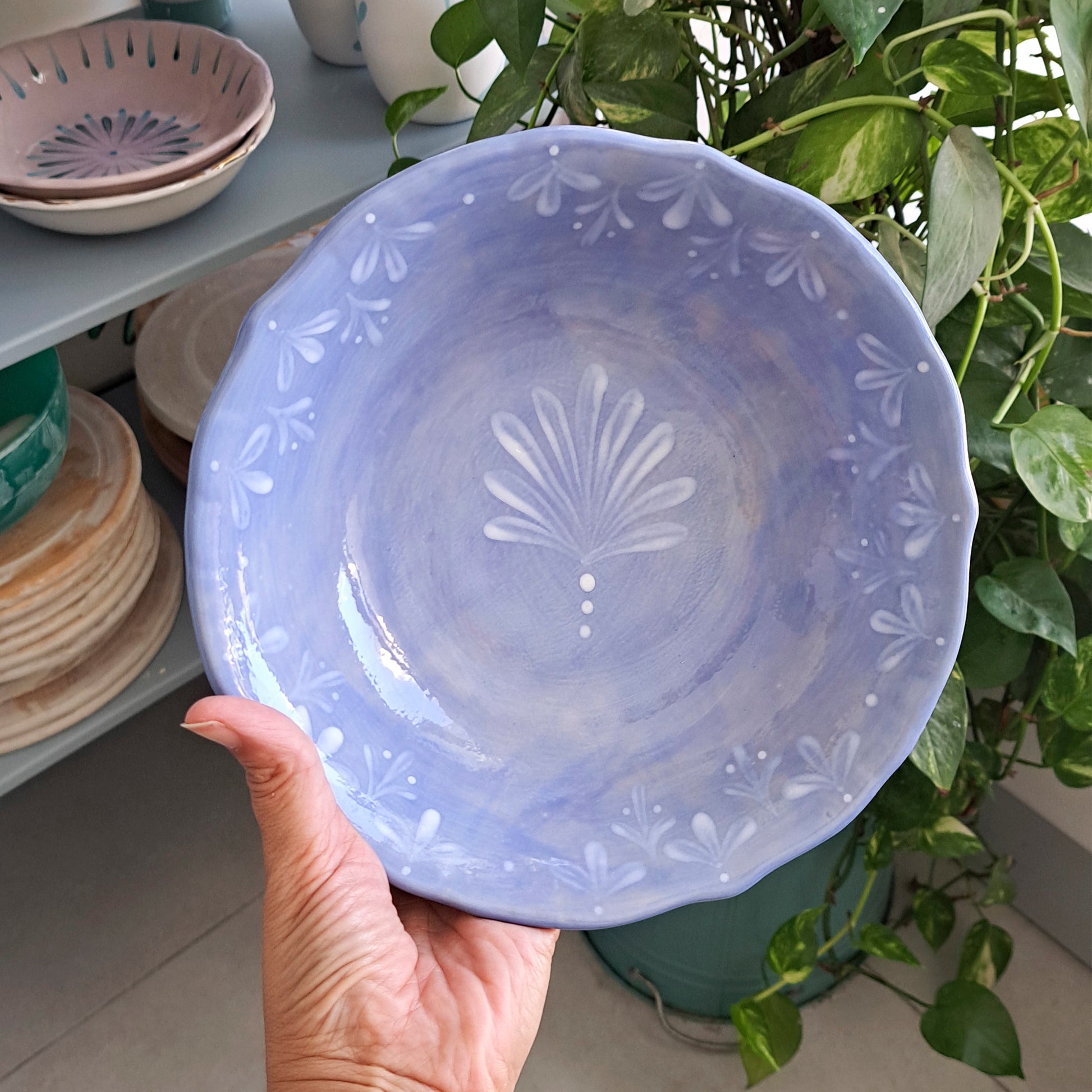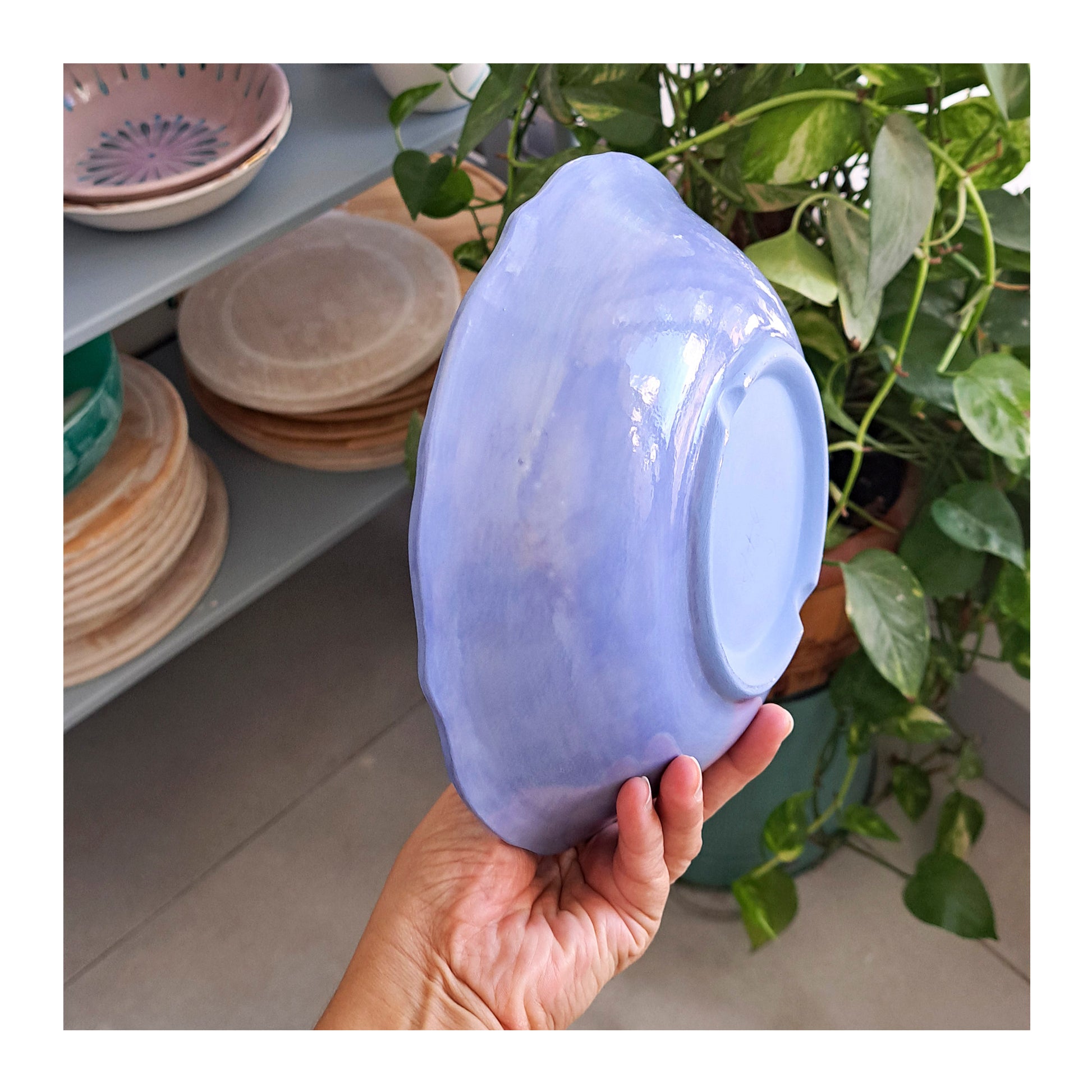 הקערה צבועה ומצויירת ביד חופשית לכן אין עוד אחת כמוה. עשויה בטכניקת תבניות, צביעה ידנית בצבעי אנגוב וגלזורה. מתאימה להגשת סלט ועוד מלא דברים טעימים.